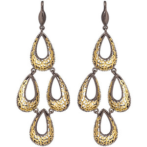 14k Gold Plating and Hematite Filigree Earring Dangles in Tutone
