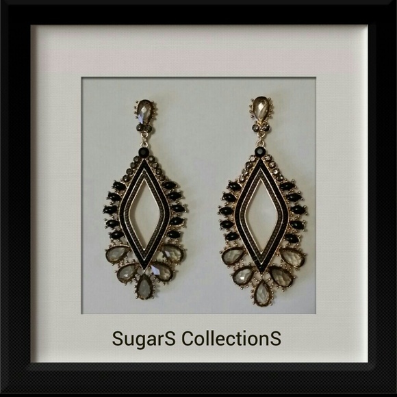 Black & gold tone leaf like design. Black and gray stones cascading earring. Post back earring, comes with an extra set or backs.