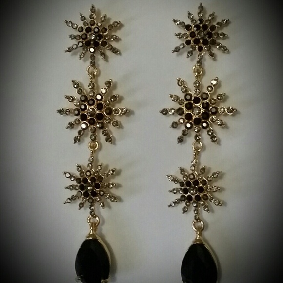 Three black and gray star cascading with black teardrop. Post Earring with extra set of backings.